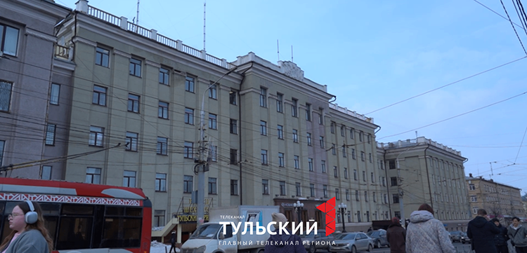 Еще один пример сталинского ампира. Это здание, которое исторически принадлежало комбинату «Тулауголь». Сейчас в нем располагается наш телеканал и различные офисы. Это самая протяженная постройка в квартале — ее длина составляет 135 метров.