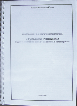 На минувшей неделе курьеры, оплаченные скандальным местным меда-магантиком Григорием Нуждихиным, разнесли по тульским офисам и кабинетам 42-страничный бюллетень «Тульские PRяники»: подлог и «поливание грязью» как основные методы работы». Однако, стремясь очернить наш портал, заказчик брошюры с перепугу по уши измарал губернатора.