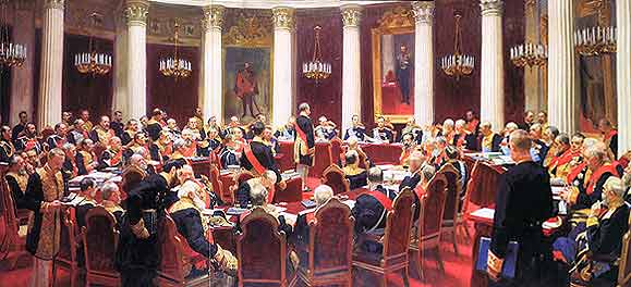 В апреле 1901 года И.Е. Репин получил официальное предложение написать картину «Заседание Государственного Собрания», приуроченное к 100-летнему юбилею со времени основания высшего законодательного органа России.