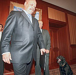 Президент России Владимир Путин и лабрадор Кони слушали лидера Партии пенсионеров Игоря Зотова с открытым ртом Фото: Дмитрий Азаров / Коммерсантъ