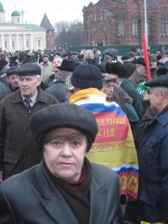 Однако участники митинга, которых собралось приблизительно человек триста, все же пришли к 18 часам на площадь. В основном это были пенсионеры – неизменные участники всех акций протеста в Туле.