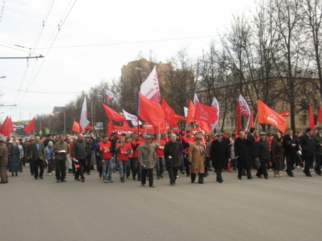 В 2008 году областное отделение КПРФ проводило свой митинг в сквере Коммунаров, затем предполагалось, что коммунисты встроятся в хвост общей колонны, которая шла по проспекту Ленина на площадь Ленина. Однако, колонна КПРФ шла на значительном удалении от профсоюзно-единороссовской, правда, по тому же маршруту и в то же время.
