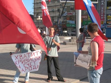 Вчера в Туле  возле  Главпочтамта  тульская ячейка РНДС провела  иформационный пикет под лозунгом «Хватит кризисов за счет народа».