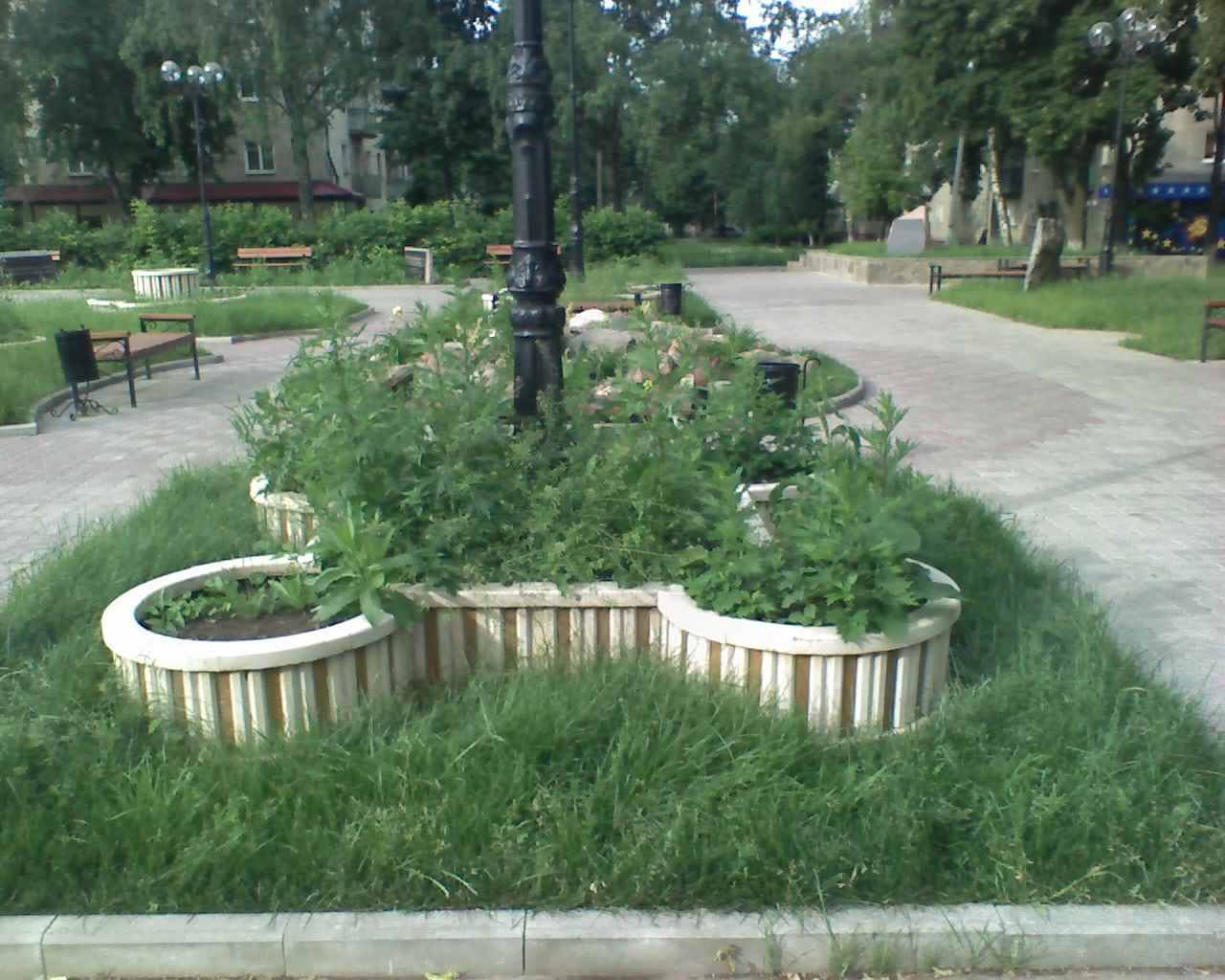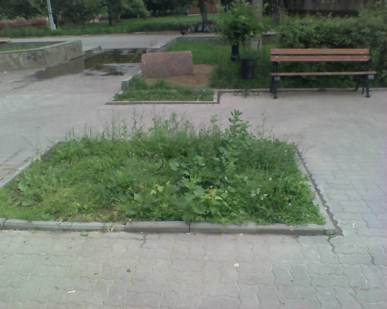 Администрация Тулы высадила «миллион алых роз» по городу. Но не на все цветочницы, видимо, хватило. Сквер Л.Н.Толстого. Без комментариев.
