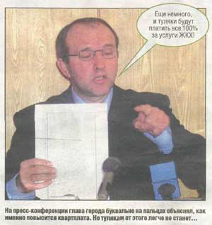 Анатолий Анатольевич заявил следующее: «Руководством города нарушено решение Совета глав муниципальных образований от 2004 года о согласовании тарифов с областной администрацией. Несмотря на многократные обращения администрации, документов, подтверждающих обоснованность увеличения тарифов, руководством города представлено не было. Мною в адрес главы города направлено письмо с требованием в срочном порядке предоставить эти документы.