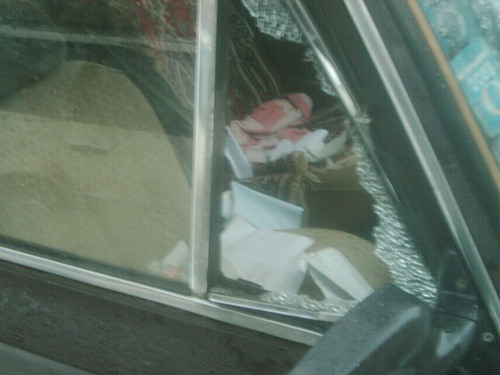 Ночью разбили ветровое стекло, и разбили стекло потому, что под утро орала твоя сигнализация. Никакой политики.