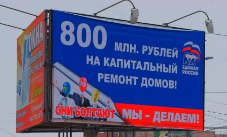 По городу висят огромные билборды, где было начертано о выделении одного миллиарда ста миллионов рублей на ЖКХ. Было написано в январе, а  сейчас  — восемьсот миллионов рублей. Уже триста миллионов отпилили.