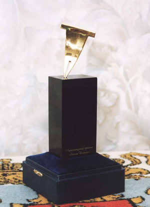 Как это — кто?! Это современные российские классики! А вот приз какой-то стремный, хоть бы рядом коробок положили бы для масштаба, я сначала подумал — еще один памятник в усадьбу