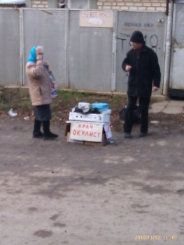 На чернском рынке коммерсант продавал очки. На картонных коробках, где был разложен товар,  надпись — “врач-окулист”. Даже если это была бесхитростная реклама, все, на самом деле, в Черни очень печально. Потому что врачей-специалистов в тульской провинции не хватает. А те, кто еще работает, имеют такую мизерную заплату, что им приходится искать подработку, а может быть даже  приторговывать на базаре.