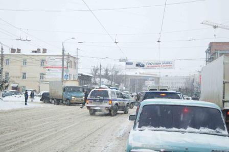 Поднял глаза и вижу…что за х-ня;автомобиль ДПС движется по тамвайным путям в попутном направлении."Бычок" в крайне правой стороне,а джип выруливает с ул.Дзержинского на разрешающий сигнал светофора (в это время разрешено пешеходное движение по ул.Советская),соответственно автомашины осуществляющие движение по ул.Советской стоят. Не вижу понта в данной "ЧЕРНУХЕ"? "Терануть" нового нач.ГИБДД? Давайте придумаем,что нибуть поумнее!