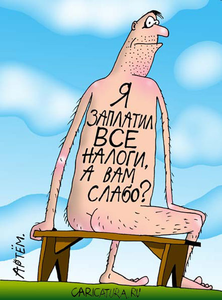 Нашу систему налогообложения прекрасно используют иностранные легионеры в футболе и хоккее.Едут к нам отработавшие свой ресурс спортсмены,а получают столько же,сколько у себя на родине получают молодые.У нас занимают рабочие места,не пускают молодых.А потом нам некого выставлять в сборных. У футболистов защита уже не меняется десять лет.Все держится на Березуцких.В Воронеже поставили новичка-он и облажался.Сейчас в "Анжи№ пригласили 39-летнего бразильца Роберто Карлоса.Контракт-9 млн долларов в год.А потом мы удивляемся,что персам проиграли.Да и в хоккее больше лесяти лет ничего не выигрывали.Наконец-то вычитал у Михаила Задорнова приличную остроту.Почему у нас в стране так плохо? Потому что нами юристы правят.А они умеют только приговаривать…