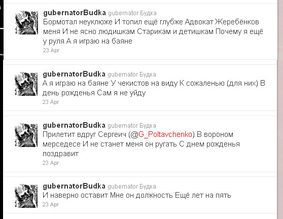 23 апреля, в день рождения мощного регионального политика федерального уровня, в микроблоге @gubernatorBudka появилось вот это стихотворение.