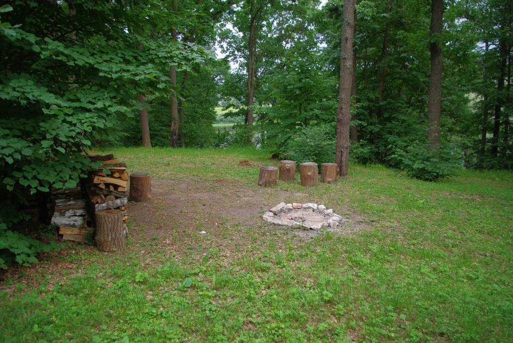 Пройдя по дороге, которая шла вдоль Оки, я обнаружил выкошенную поляну, где находилась поленница дров, кострище и внушительных размеров стол для пикника. Ухоженная живописная поляна, с которой можно спуститься прямо к Оке, по-видимому, была предназначена для приема солидных гостей. ![]()